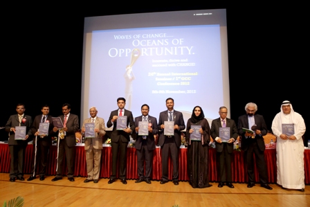 WAVES OF CHANGE: Guests pose for a group photo during the ‘Brochure Release’ at an event dubbed ‘Waves of Change… Oceans of Opportunity’ organised by ICAI Abu Dhabi.